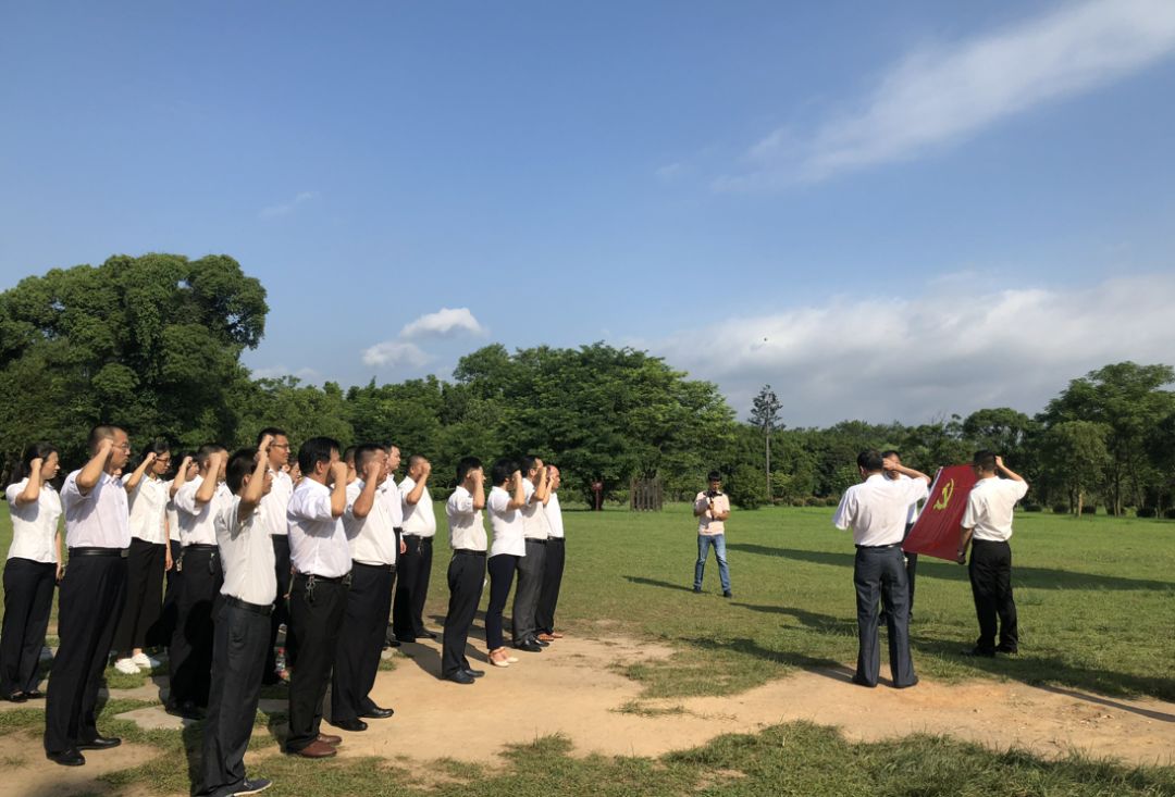 全体党员干部在红军广场上重温入党誓词,并向红军烈士敬献花篮。叶坪旧址管理处主任、一级讲解员杨丽珊进行了现场教学,通过讲述革命历史故事,分享心得感悟,提醒大家不忘历史初心,戮力齐心向前奋进!