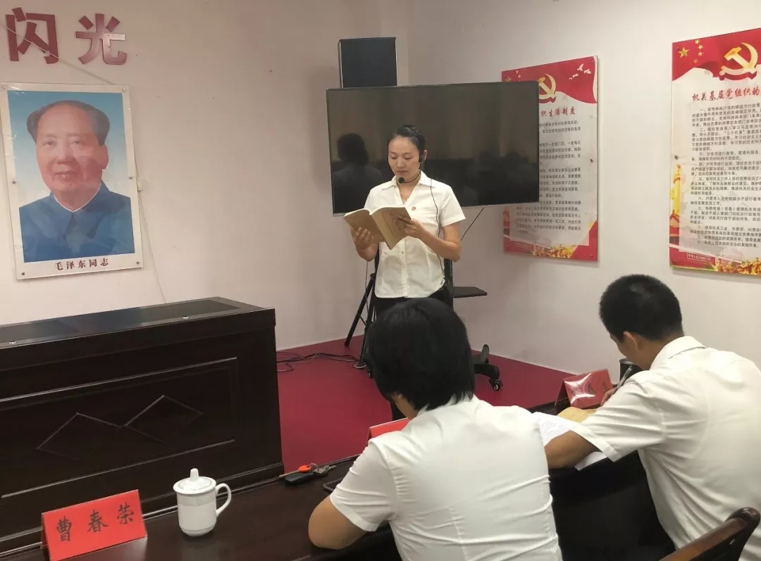在四楼党员活动室,我馆组织开展了红色讲习“四个一”活动,即开展一次专题讲座、诵读一封红色家书、讲述一个初心故事、上一堂专题党课。