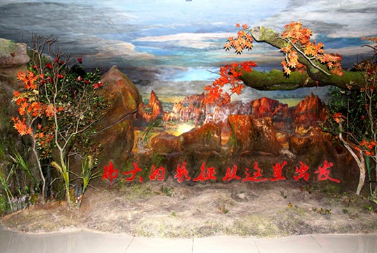 “伟大的长征从这里出发”是我馆大型原创图片史料展,于2017年在中华苏维埃纪念园内展出。展览分为战略转移的决策、北上抗日先遣队、战略转移的准备、伟大的战略转移四大部分,采用油画、场景、多媒体、雕塑等多样化展陈手段,生动再现了红军长征出发前的革命历史。(宣教部 钟林芳)