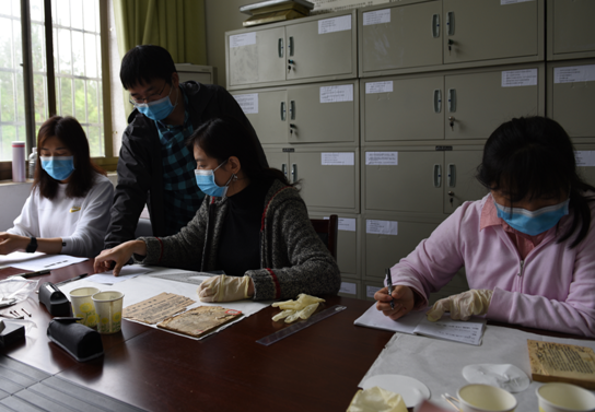 4月17日,国家文物局纸质文物保护重点科研基地南京博物院文物保护修复专家莅临我馆,为馆藏珍贵纸质文物把脉诊断,用专业仪器对我馆病害严重珍贵纸质文物进行了光泽度、色差、溶解度、PH值等测量,进行了样品采集与信息收集,为编制保护修复方案、实施修复保护工程奠定了基础。