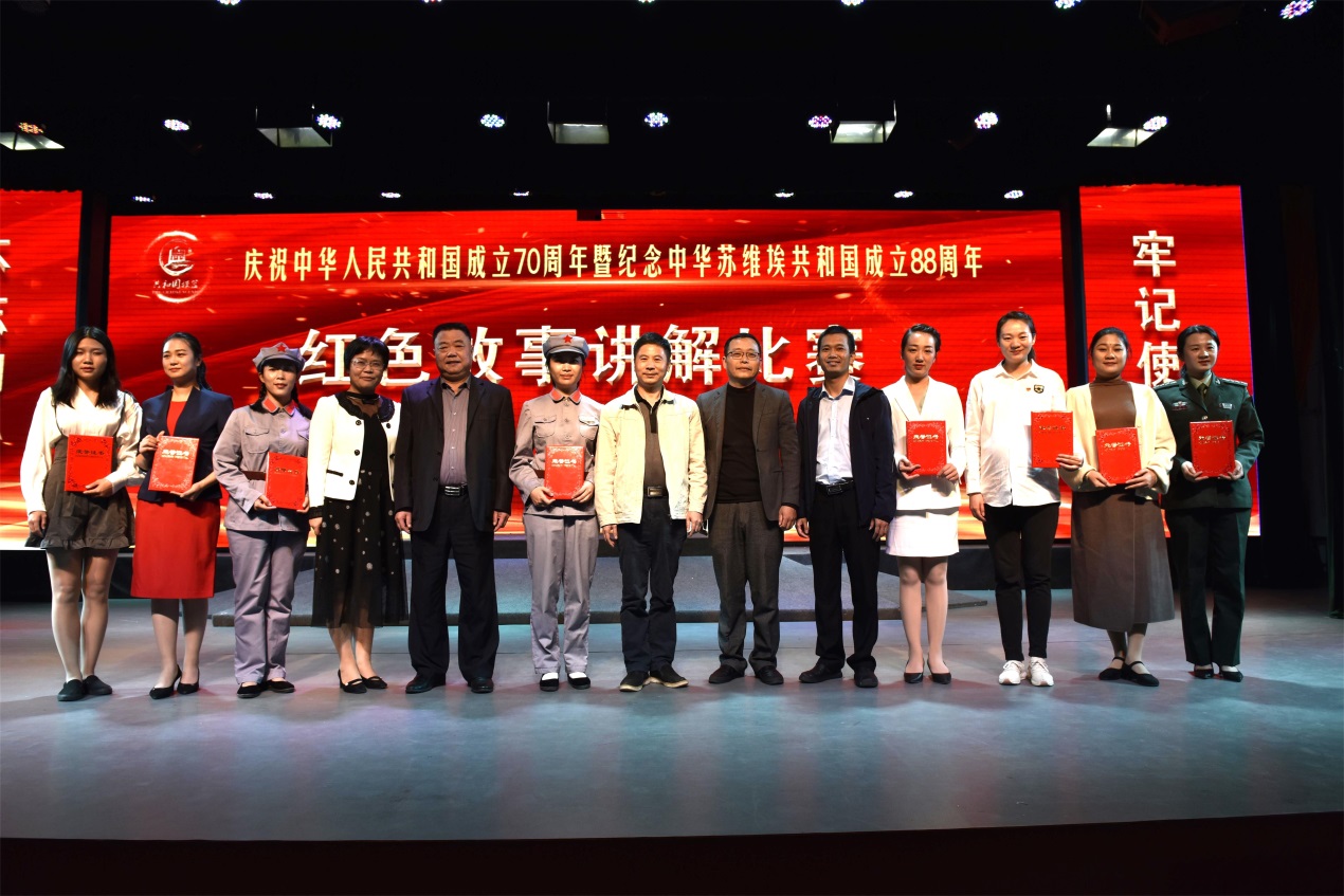 为庆祝中华人民共和国成立70周年暨纪念中华苏维埃共和国成立88周年,扎实推进五好讲解员建设,11月5日,瑞金中央革命根据地纪念馆举行了 “讲好红色故事 传承红色基因 弘扬苏区精神”讲解比赛,考核提升讲解员业务水平,展示纪念馆良好风貌。